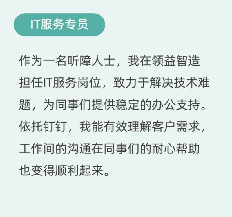 今年以来,公司已经在广东和江苏展开了专门面向残障人士的招聘会,并联合线上直播的方式收取残障人士的简历。